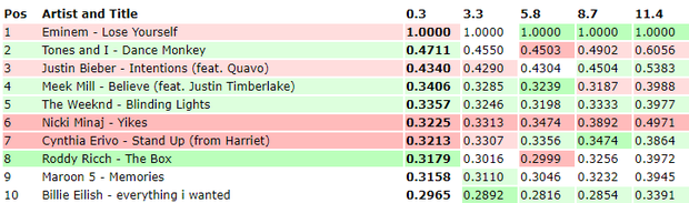 Thành tích iTunes của ca khúc Lose Yourself.